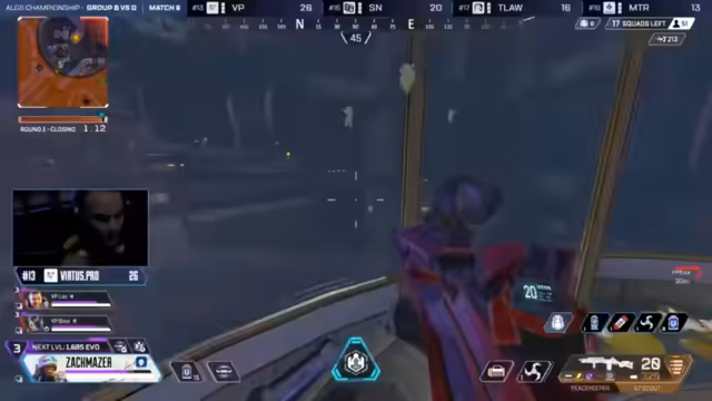 07:25:22Die Spiele auf World's Edge beginnen mit intensiven Landefehden und rotationsphasen. Aurora, das am Ende der Runde auf dem ersten Platz liegt, landet in Survey Camp und zeigt sofort aggressives Verhalten gegenüber Allianz. Kommentatoren beschreiben die Taktik von Aurora, die Skyhook East-Loot schnell zu sichern und von dort strategisch in die Schlachten einzugreifen. Gleichzeitig wird die Position von Liquid auf Klimatizer analysiert, die es ihnen ermöglicht, die Umgebung zu kontrollieren und Gegner von der Ferne aus zu bekämpfen. Die Ringzonen erzwingen ständige Bewegung und taktische Entscheidungen.