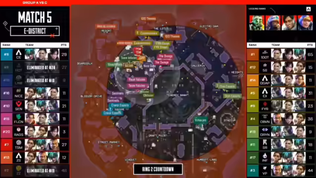 01:15:23ZZ hielt die Südseite, während FYR Strays im Rücken war. Oblivion wurde als neuntes Team eliminiert. Five Star positionierte sich offen und wurde von Zone Spammers beschossen, die sich im Gebäude von 100 Thieves befanden. 100 Thieves zogen sich in ihr Gebäude zurück, um sich zu heilen und Abklingzeiten abzuwarten. Virtus.Pro musste sich mit Leave-No-Witnesses auseinandersetzen, was zu einer potenziellen gegenseitigen Vernichtung führte. 100 Thieves nutzte eine Bubble und eine Wall, um Zone Spammers auszuschalten, wodurch sie Ressourcen verbrauchten. Virtus.Pro lief in Leave No Witnesses hinein und wurde von Jen Burton ausgeschaltet. 100 Thieves plante einen Reset, aber FYR schien sie ins Visier zu nehmen. FYR gewann gegen 100 Thieves und griff ZZ an. ZZ eliminierte FYR und gewann das Spiel, wobei ein Spieler mit nur einem HP überlebte. ZZ gewann aufgrund des Timings, das ihnen zusätzliche Kill- und Platzierungspunkte einbrachte. Sie belegten mit 14 Kills und 4.700 Schaden den ersten Platz. 100 Thieves belegte den zweiten Platz und profitierte davon, dass sie den vierten Platz belegten.