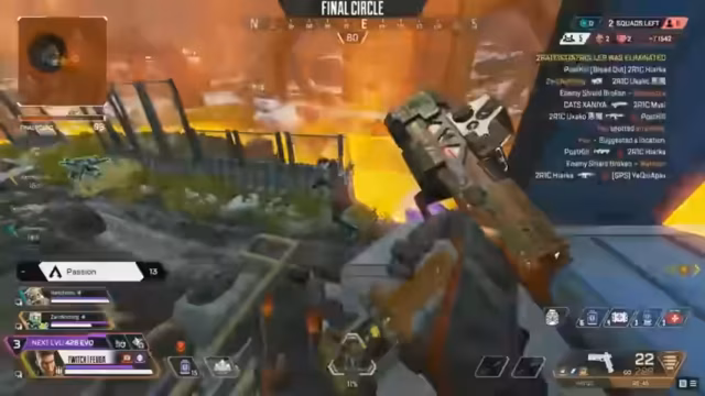 02:38:47Alliance kontrolliert zwar ein Gebäude gut, aber es wird als fast unmöglich angesehen, zum Lightning Rod zu gelangen, da mehrere Teams sie unter Beschuss nehmen würden. Es wird prognostiziert, dass maximal ein Team es überqueren wird. Unterdessen eliminiert Team Portugal ein Team, wodurch es nur noch sieben Squads gibt. 07 kontrolliert das Gebiet und spielt 'King of the Hill'. Ein Spieler von Effekt wird durch einen Fall von der Karte eliminiert. Nur 2R1C verbleibt teilweise im Kreis. Uchak von 07 hält sich versteckt, während E6 sich ebenfalls auf der anderen Seite befindet. Auglust und Hungry übernehmen die Kontrolle über die Zipline. Es verbleiben vier Squads: E6 (Duo), 07, Infinite und Orglis, alle mit voller Besetzung. Orglis und Hungry versuchen, Rekorde zu brechen und haben bereits 11 KP. 07 bereitet einen Angriff auf Orglis und Hungry vor, die um die Höhe kämpfen. Der Kreis verkleinert sich, und die Höhe wird ein entscheidender Faktor. E6 wird eliminiert, und die letzten drei Squads sind Infinite 07, Orglis und Hungry. 07 gewinnt das Spiel mit einem epischen Clutch, nachdem Orglis und Hungry zuerst ausgeschaltet wurden. Infinite hatte zwar die beste Position, konnte aber nicht den Sieg erringen. 07 eliminiert Infinite schnell, indem sie die Spieler direkt nach dem Verlassen der Höhe ausschalten. Caustic spielt eine wichtige Rolle in den finalen Kreisen, da sein Gas den Gegnern Schaden zufügt und ihre Sicht behindert.