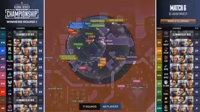 08:00:42Mit dem Abschluss der Spiele auf World's Edge wechseln die Teams nun nach E-District. Viele Teams, insbesondere Fnatic, hatten Probleme auf der vorherigen Karte und kämpfen nun mit dem Druck, ihre Punktebilanz zu verbessern. Die Priorisierung von POIs wie Storm Point zeigt sich hier, da E-District nur zweimal gespielt wird und von vielen als weniger wichtig eingestuft wird. Die Anpassung an die neue Map ist jetzt entscheidend.