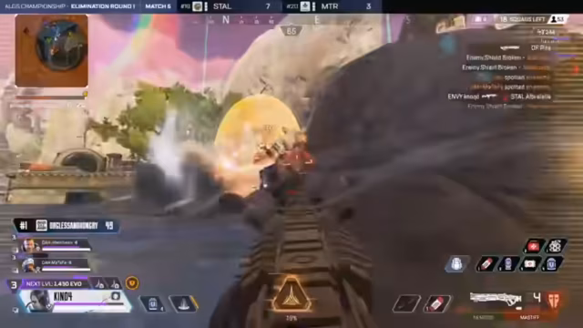 07:11:19Im zweiten Spiel auf World's Edge agieren einige Teams wiederum sehr früh aggressiv, während GHS Professional seine vorsichtige, loot-orientierte Strategie aus dem ersten Spiel fortsetzt. Falcons macht bei einer Rotation einen taktischen Fehler und wird von Disguise aus dem Spiel genommen. Envy hingegen zeigt eine starke Leistung und eliminiert Green Stego, was ihnen 23 Punkte und einen soliden Start in die Runde beschert.