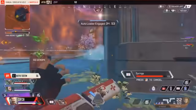 02:17:35Die Endgame-Kämpfe sind intensiv und erfordern taktische Verschiebungen. Teams wie Nemesis und Alliance agieren aggressiv und nutzen Taktiken wie den Wraith-Portal für schnelle Positionierungen oder hohe Positionen, um andere Teams zu bekämpfen. Ein Schlüsselmoment ist der 3v3-Kampf zwischen Aurora, VCGO und Nephilim, in dem VCGO durch kluge Timing und Nutzung des Wraith-Portals den Sieg erringt und wichtige Platzierungspunkte sammelt.