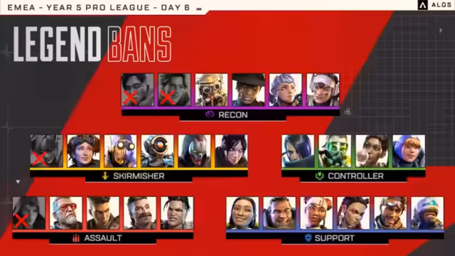 03:01:55Alliance bleibt ungeschlagen und sichert sich den ersten Platz im Gesamtranking durch eine konstant starke Leistung, was eine deutliche Trennung vom Rest des Feldes zeigt. Ballistic erweist sich als dominierender Legend des Turniers mit einer 68% Pickrate und wird als zuverlässige Alternative zu Pathfinder angesehen. Teams reagieren auf Banns mit einem Aufkommen von Legends wie Valkyrie, Fuse und Wraith, um Informationslücken zu schließen und neue strategische Wege zu finden.