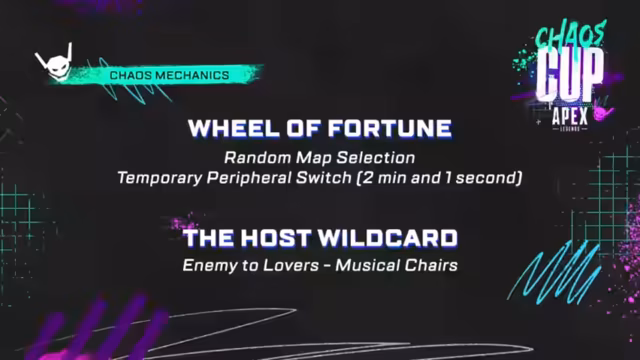00:25:17Der Name Chaos Cup rührt von mehreren chaotischen Elementen her. Ein Glücksrad bestimmt jede Runde die Map. Spieler müssen zudem ihre Eingabegeräte wechseln: Maus/Keyboard-Spieler müssen auf Controller und umgekehrt für zwei Minuten und eine Sekunde umsteigen. Die vier vorgestellten Teams sind Let'Em Cook, Messie Nessies, Skibbidi und Ratjam.