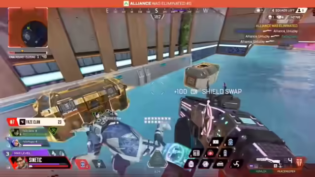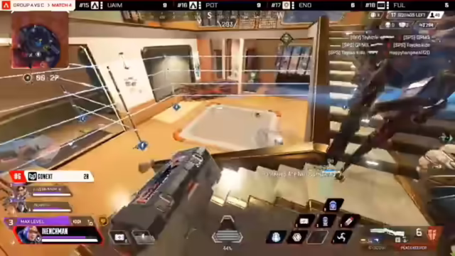 02:39:28Tyler demonstriert Vertrauen, indem er allein auf dem Dach spielt. Die Zone ist unberechenbar, was die Bedeutung des IGL unterstreicht. Trojan gerät früh in einen Kampf. FUL versucht eine Wiederbelebung, während Passion aggressiv nach Punkten sucht. Passion sichert sich eine Position mit einer Gibi-Blase und Mauern, riskiert aber, von anderen Teams angegriffen zu werden. Nameless wird eliminiert, während Passion weiterhin aggressiv vorgeht. Alliance sichert sich weitere Kills und festigt ihre Führungsposition. Alliance demonstriert ihre Dominanz und Vielseitigkeit in verschiedenen Spielstilen. Nova Gaia und Alliance rotieren in ähnlicher Weise. Navi benötigt eine gute Platzierung, um unter die Top 10 der Region zu kommen. Nova Gaia rotiert langsam und muss aufpassen, nicht in Alliance zu geraten. Doors hält Teams auf und versucht, Kills zu erzielen. Alliance verliert Mitglieder, versucht aber, sich zurückzukämpfen. Trix spielt einen Kampf gut und eliminiert zwei Mitglieder von Alliance. Go Next hält sich komfortabel im Hintergrund. Alliance versucht, sich durch Pot zu kämpfen, muss aber auf On-Dogs achten. Go Next hat ebenfalls Schwierigkeiten und muss einen Kampf eingehen. Unlucky nutzt ein Wraith-Portal, um zu entkommen. Pot wird eliminiert, und Alliance versucht erneut eine Erholung. Endorse ankert mit Catalyst und ermöglicht es dem Team, sich zu heilen. Allianz und Endorse sandwiching On-Dogs ein. Navi portet sich vor Alliance und kontrolliert einen Choke Point. Nova Gaia hört man frustriert über Funk. FaZe Clan nutzt die Situation und scoutet nach Informationen. Zayn kann sich nicht stabilisieren und wird eliminiert. Go Next lauert auf einer erhöhten Position über Zipline Mafia. SLR nimmt FaZe ins Visier. Zipline Mafia überlebt einen EMP-Angriff und sichert sich einen tieferen Platz. Passion wird von Go Next eliminiert. Zipline Mafia gewinnt das Spiel, indem es ein Haus verteidigt und auf einen Fehler von Go Next wartet.