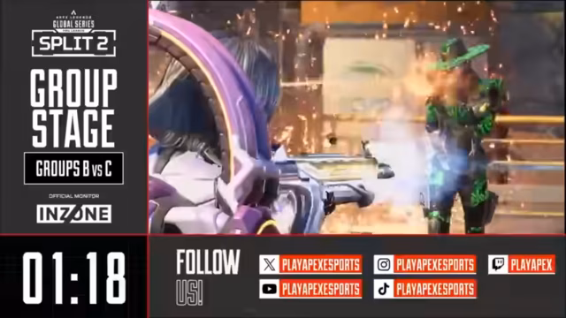 00:40:21Im späteren Spiel auf Storm Point bleibt die Zone chaotisch. Teams mit Sparrow-Kern, wie Navi und Ronin, haben es aufgrund der eingeschränkten Mobilität in Caustic-Gas schwer. Ronin kann jedoch einen entscheidenden Sieg erringen, indem sie ihre Gibraltar-Dome, Newcastle-Wände und die Gibraltar-Bombarde strategisch einsetzt, um in einem chaotischen letzten Kreis zu überleben und den ersten Sieg des Tages zu holen.