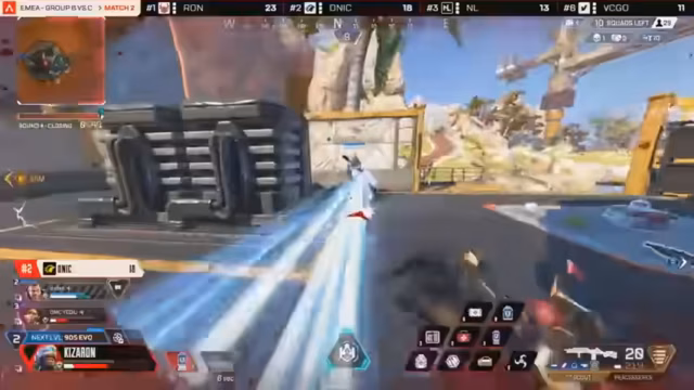 02:39:30Das Team Go-next kämpft unter hohem Druck gegen Empire Gaming. Trotz guter PK-Shots von Go-next überzeugt Empire mit besserer Timing und Vollgesundheit. Eine Re-Spawn-Beacon aktiviert sich, während die Ringe schließen und die Teams zur Evac-Tower-Rotte gezwungen sind. Go-next versucht, auf dem Turm zu überleben und platziert sich in den Top 10, was ihnen wertvolle Platzierungspunkte bringt, um ihre Führung in der Lobby zu sichern.