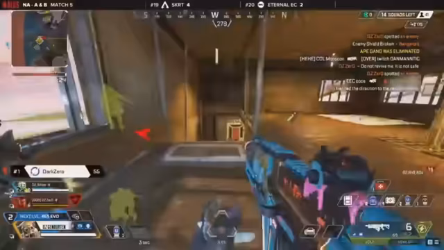 00:11:13Eine kurze Analyse-Interview mit dem Spieler 'Naughty' von GKS offenbart deren Anpassung an die neue Meta. Das Team setzt auf eine Caustic-Pick statt auf eine defensive Positionierung und kombiniert dies mit einer Valkyrie für den späten Spielverlauf. Die Moderatoren diskutieren auch die strategische Nutzung von neuen Legend-Kombinationen und Fähigkeiten. Insbesondere wird die Flexibilität bei der Wahl des IGLs zwischen Bloodhound und Bangalore thematisiert, wie es bei DarkZero der Fall ist. Dabei wird die unbestreitbare Stärke von Zero auf Bangalore als entscheidender Faktor für deren Erfolg hervorgehoben.
