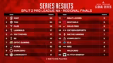 00:47:26Die Regional Finals beginnen mit einem turbulenten Start. TSM gewinnt das erste Spiel auf Stormpoint und sammelt dabei 22 Punkte. FaZe beendet das Spiel auf dem zweiten Platz mit 15 Punkten. Diese starke Leistung beantwortet die vielen Fragen, die das Team zu Beginn der Split aufgeworfen hatte. Mit diesem Punktegewinn positioniert sich TSM bereits sehr gut im Gesamtklassement, da das Ziel darin besteht, in die Top 12 zu kommen. Exit Gaming zeigt ebenfalls ein solides Spiel und erreicht den dritten Platz mit 16 Punkten.