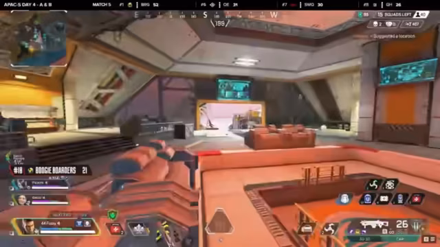 05:04:12Das zweite Spiel auf World's Edge begann mit DNZ, die einen Punkt kontrollierten. KPG suchte hier aktiv nach Eliminierungen, während die Kämpfe bei Stax zwischen Kill Devil und Akuma langsamer begannen. Akuma nutzte ihre Positionsvorteile, um einen aggressiven Befehl gegen Kill Devil zu initiieren. Bearclaw Gaming und andere Teams agierten strategisch vorsichtig, während die Ringe den Druck auf alle Teams erhöhten und gezwungen wurden, sich neu zu positionieren.