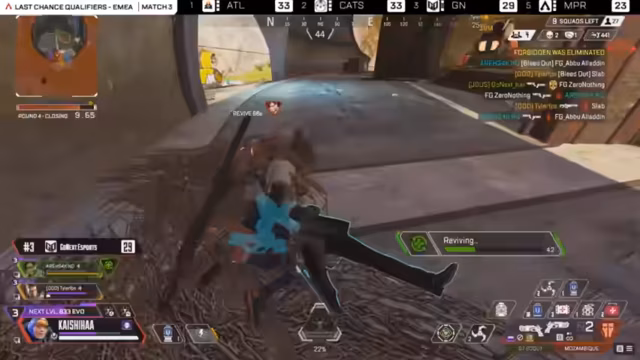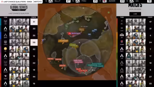 Die letzten Kämpfe der EMEA LCQ wurden auf World's Edge ausgetragen. In einer hochspannenden Endphase konnte sich das Team FaZe Clan durchsetzen. Dem Team gelang es, trotz eines Knock von Synetic, durch geschickte Positionierung und einen gezielten Push gegen FullEnglish den Sieg zu holen. FaZe qualifizierte sich mit 104 Punkten für die Champs.