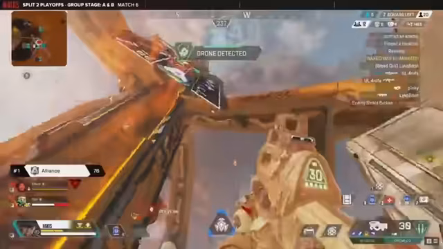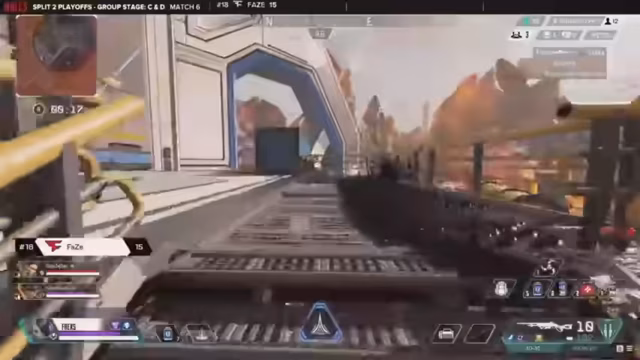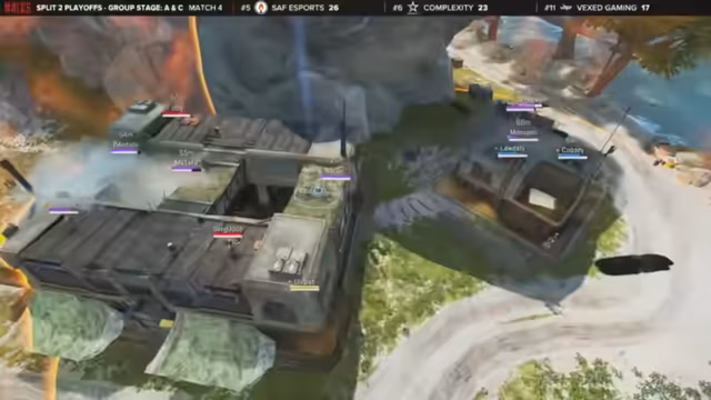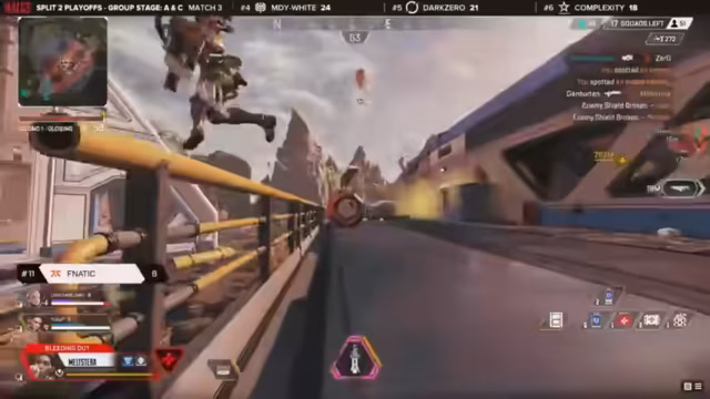 11:16:52Eine ungewöhnliche Zone konzentriert sich auf die Brücke, was einen großen Höhenunterschied erzeugt und das Spiel auf High-Ground-Positionen zwingt. Vex Gaming nutzt diese Lage aus, um um die Rückseite der Zone herum zu manövrieren, während das Risiko besteht, dass Gegner mit Überraschungsangriffen wie einem Gravit Lift eindringen können.
