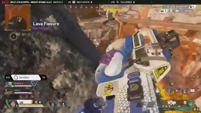 04:30:05Im sechsten Spiel der Gruppe C gegen D zeigte sich Pulvrix von ihrer besten Seite. Nachdem das Team zunächst passiv nur auf Platzierungspunkte setzte, lieferte es ein bemerkenswertes Endspiel auf World's Edge. F-Chan nutzte den Kraber erfolgreich und das Team sicherte sich durch eine kluge Positionierung in der Lava-Siphon-Nordzone den Sieg. Diese starke Leistung, inklusive 14 Kills für Bulvarex, verhalf Pulvrix zu einem entscheidenden Vorsprung, der sie wahrscheinlich auf den ersten Platz der Lobby beförderte.