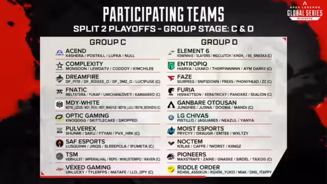 In der Londoner Copper Box Arena starten die Playoffs der ALGS. 40 Teams kämpfen in der Gruppensphase. Zuerst wird im Round-Robin-Format gespielt. Die Top 10 qualifizieren sich direkt für die Finals. Die restlichen Teams kämpfen in einem Eliminations-Bracket um die verbleibenden Plätze. Die Favoriten wie Fnatic und Ascend gelten als stark.