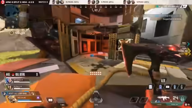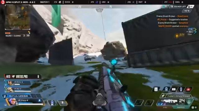 05:42:20Vegas Inferno gewinnt ein knappes Match durch einen mutigen Angriff, bei dem ein Spieler als Köder dient, um auf die hochgelegene Position von Evo's Predator zu gelangen. Ihre exzellente Positionierung und Nutzung des Watson-Pylons ermöglicht es ihnen, den Sieg davon zu tragen und ihre Stellung im Leaderboard zu festigen. Dies beweist ihre Fähigkeit, unter Druck zu bestehen und organisierte Rettungsaktionen durchzuführen.