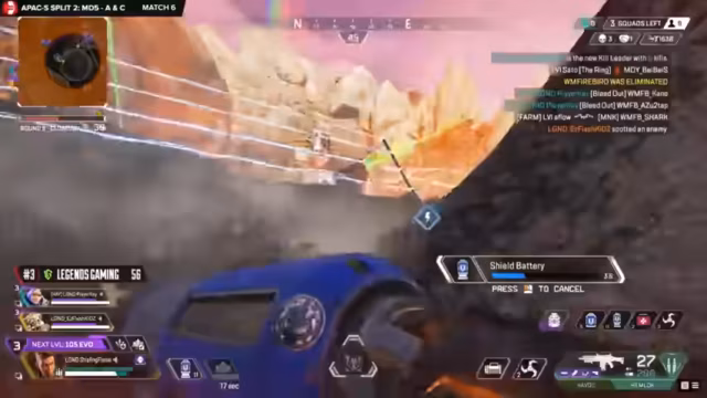 03:12:44Das Spiel auf World's Edge ist geprägt von konzentriertem Druck auf Teams, insbesondere wenn ein Team ohne eine bestimmte Legende wie Watson agiert. Boogie Boarders greifen Makers an, was zu einem großen Kampf führt. Dexter zeigt erneut herausragende Leistung und sichert Makers einen klaren Sieg, was sie vorerst an die Spitze der Wertung auf Stormpoint bringt, während Killapoz die Punkte hart erarbeitet.