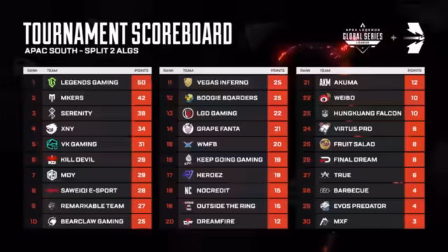 06:56:57Nach einer starken Leistung im letzten Spiel klettert Legends Gaming von Platz 4 auf Platz 1 des Gesamtscoreboards. Ihr historischer Sieg mit 15 Kill Points und einer cleveren Entscheidung nach dem Sieg, um zusätzliche Kills zu erzielen, macht sie zum unangefochtenen Leader und sichert ihnen einen Qualifikationsplatz für die LAN Finals.