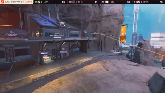 02:30:32Im fünften Spiel auf Broken Moon, in der Nähe von Stasis Array, entscheiden sich die Teams für eine sehr defensive Spielweise. Ohne die Bewegungs-Legende Alter sind Gebäudeanfangspositionen besonders wertvoll. Die Sicherheitslegende Fuse wird von über 50% der Teams ausgewählt, um frühzeitig Räume zu sperren und Gegner aus Gebäuden zu verdrängen. Navi nutzt dies, um eine dominant defensive Position zu beziehen.