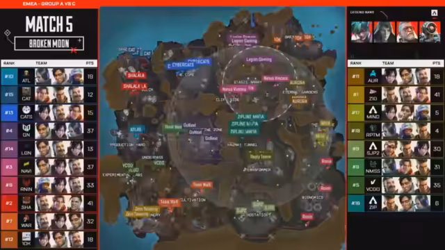 02:13:02Das Endgame auf Broken Moon entbrennt in einem Kampf zwischen den letzten verbliebenen Squads: Team War, Zero Tenacity und Atlas. Team War agiert aggressiv und erkennt früh, dass sie nicht auf Trades warten können. Mit einem strategisch platzierten EMP und einer koordinierten Attacke eliminieren sie Zero Tenacity sichern sich so den Sieg und wichtige Punkte für die Gesamtwertung.