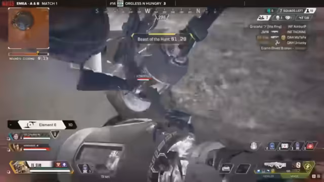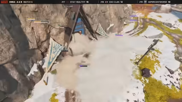 01:33:26Viele Teams setzen auf die Havoc, begünstigt durch den Turbocharger im Crafter. FullEnglish befindet sich in einer guten Position, nachdem sie sich von einer schwierigen ersten Woche erholt haben und nun versuchen, konstant in den Top 20 zu bleiben. E6 nutzt einen Vorteil und forciert einen Kampf, wobei der Bloodhound erneut versucht, den Kampf zu erzwingen. Die Smoke-Taktik ist jedoch weniger effektiv als zuvor. Das Zonenverhalten ist ungewöhnlich und zwingt Teams wie StayHealthy, die sich auf der anderen Seite befinden, zu riskanten Manövern. 2R1C hält eine Position und spekuliert auf einfache Kills, muss aber irgendwann rotieren, um nicht in Schwierigkeiten zu geraten. Sie bevorzugen es, Kämpfe einzugehen und KP zu sammeln, auch wenn sie noch keinen Sieg errungen haben.