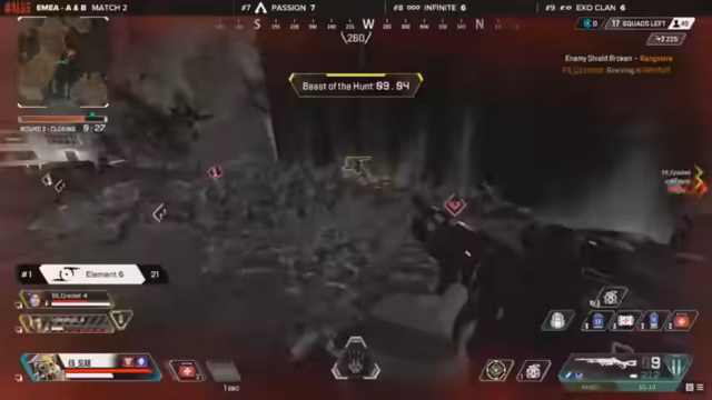 02:16:3440% Worse wurde schließlich von Alliance eliminiert, während ANC Outplayed einen Punkt für den Platzierungsrang holten. Red Dragon, ein 4-3er Team, versuchte sich gegen Alliance zu behaupten, während sie gleichzeitig an ihrer nächsten Rotation arbeiten mussten. Jukes entschied sich für einen Caustic, was auf World's Edge eine clevere Wahl war. Alliance nutzte die Arc Stars, was besonders für Effect eine ideale Position darstellte. Jedoch zwang die Ringzone das Team zu einer Umrüstung, anstatt die Kills zu priorisieren.