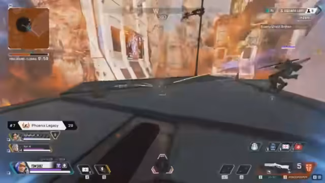 02:39:18Nach einem langsamen Start positioniert sich das Team 07 ideal zur letzten Ringphase und nutzt die Top-Höhe von Phoenix Legacy aus. Phoenix Legacy unternimmt einen entscheidenden Angriff auf 07, wird aber durch eine präzise Schussfolge von Natsuki mit der Flatline am Ende in einem 1-gegen-1-Duell gestoppt. 07 gewinnt das Spiel und klettert dadurch im Turnier-Ranking erheblich, was eine beeindruckende Wende für das darstellt.