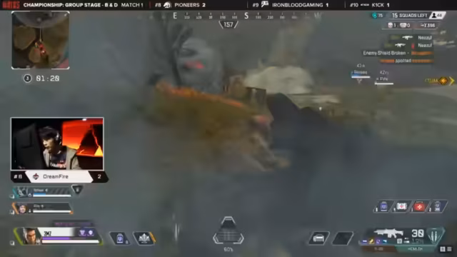 02:12:36Die Endphase auf Storm Point ist durch chaotische Kämpfe und dichte Positionierungen geprägt. Teams wie Dojo, Exet und Ascend finden sich in einer hektischen Schlacht wieder, bei der Positionierung und Timing entscheidend sind. Dojo nutzt eine Cleaver-Shot zur richtigen Zeit, während Ascend eine passive Rolle einnimmt und abwartet, bis die anderen Teams sich bekämpfen, bevor sie eingreifen.