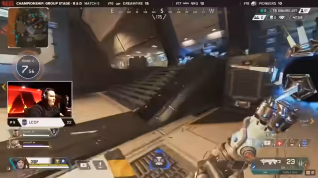 05:08:25Es verbleiben acht Squads, und NRG versucht, den Kampf zu beenden, wird aber von Team Singularity überrascht und eliminiert. Dreamfire entkommt als Solo. Team Singularity rückt in das Gebäude mit dem Kraber vor. J-Lings und Pioneers halten Schlüsselpositionen, während der Zirkel sich verengt. Mehrere Bubble-Teams, darunter KCP, Onik, Singularity und 100 Thieves, sind noch im Rennen. Team Singularity eliminiert Moist Esports und kämpft gegen Blackhand. Pioneers werden von Blackhand bedrängt. J-Lings hält die Höhe und kontrolliert die Position mit Watson-Fences. Blackhand und Onik kämpfen gegeneinander, während J-Lings auf den richtigen Moment wartet. Blackhand wird durch einen EMP geschwächt und schließlich eliminiert. J-Lings sichert sich den Sieg mit einem perfekten Spiel.
