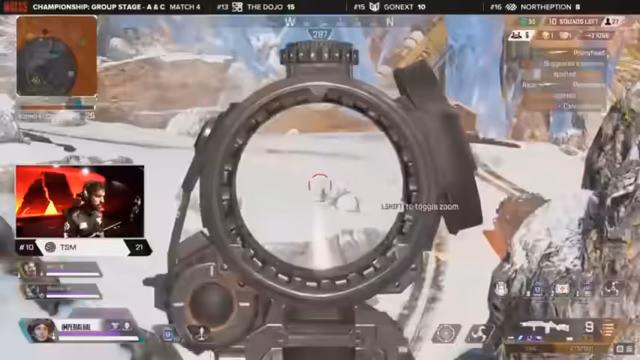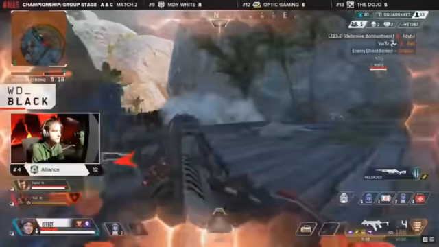 12:02:02Das letzte Spiel der Gruppensphase beginnt mit dem Abflug des Dropships. Die Aufmerksamkeit richtet sich auf Thermal Station, Dojo und Allianz, da das Spiel über den Verbleib im Winner's Bracket entscheiden wird. Die Teams wählen ihre Legends und bereiten sich auf einen intensiven Kampf vor, der die Turnierdynamik grundlegend verändern könnte.