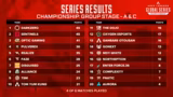08:02:07Nachfolgend werden die verbleibenden Serien des Tages besprochen, welche über den Einzug in die Gewinner- oder Verliererrunde entscheiden. Dabei wird erwähnt, dass die Gruppen A und C den Tag um 19:00 Uhr abschließen werden. Für Teams am Rande der Qualifikation ist diese letzte Serie entscheidend, da sie darüber bestimmt, welche 20 Teams in die Gewinnergruppe kommen und welche in die Verlierergruppe abrutschen. Die bisherige Performance zeigt, dass Blackhand mit seiner Führung beeindruckt hat.