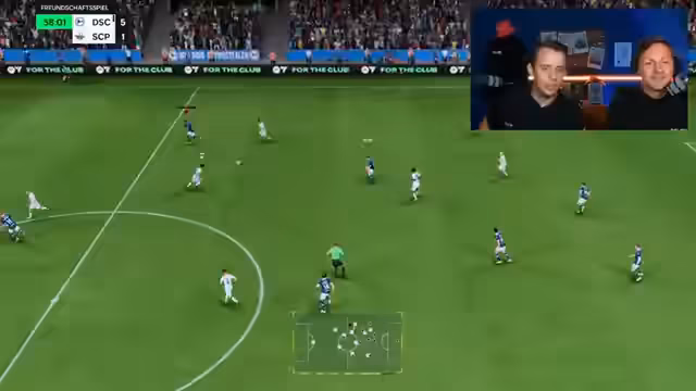 00:36:18Der Stream wechselt zum Gameplay von FIFA 25. Ein Sprecher spielt gegen den Zuschauer Justin, der schnell in Führung geht und das Spiel klar dominiert. Der Sprecher macht sich über seine eigene Leistung lustig und nimmt den Verlust humoristisch. Parallel läuft eine rege Chatinteraktion, in der über die Leistungen im Spiel, Vereinsrivalitäten und ungewöhnliche Spielsituationen gesprochen wird. Ein Zuschauer stellt eine hypothetische Frage zur Fahrtüchtigkeit nach dem Konsum von Mohnkuchen, humoristisch beantwortet.