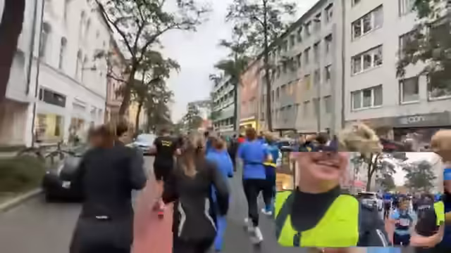 00:36:06Der Lauf beginnt endgültig, und die Gruppe startet in einer entspannten Pace. Die Strecke verläuft durch die Hannoveraner Innenstadt. Es wird nach dem Zuschauer 'Käsepapst' gesucht, der versprochene Cola und einen pinken Hut bereitstellt. Die Sichtung von 'Käsepapst' gelingt, und der Hut wird übergeben und aufgesetzt. Die Gruppe läuft gemeinsam mit anderen Teilnehmern, darunter auch Feuerwehrleute in Uniform. Der Chat interagiert aktiv, stellt Fragen und bietet Unterstützung an.