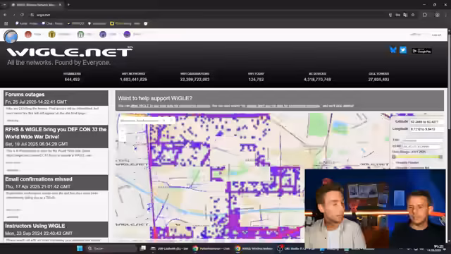 01:43:13Als weiteres exotisches Ermittlungstool wird die Visualisierung von WLAN-Netzen mittels öffentlicher Karten vorgestellt. Dienste wie Wigle erfassen Netze crowdsourced. Solche Daten werden genutzt, um Bewegungsprofile von Personen zu erstellen. Hat die Polizei Zugriff auf ein beschlagnahmtes Smartphone, kann sie die darin gespeicherten WLAN-Netze auswerten und mit den erfassten Standorten auf der Karte abgleichen. Dies kann Anhaltspunkte über Aufenthaltsorte und Verbindungen liefern und ist ein breites Feld in der digitalen Ermittlung.
