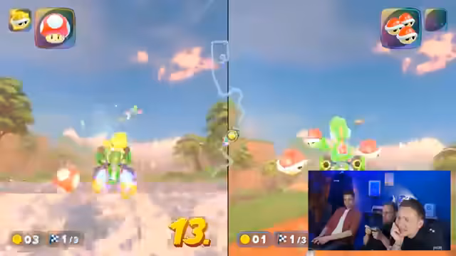 02:12:17Das FIFA-Spiel läuft, wobei die Teilnehmer sich gegenseitig fordern und humorvoll kommentieren. Für die zweite Halbzeit wird eine kreative Aufgabe von der Community ermittelt: das Spielen mit dem Controller auf dem Kopf. Dies führt zu ungewöhnlichen Spielzügen und viel Gelächter. Neben dem Hauptspiel wird auch Mario Kart gestreamt, und die Teilnehmer tauschen sich über ihre Erfahrungen mit verschiedenen Spielen aus, darunter auch Nostalgie-Titel wie Tony Hawk.