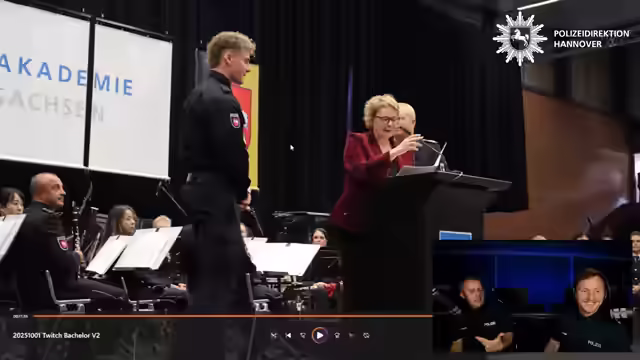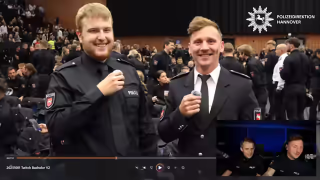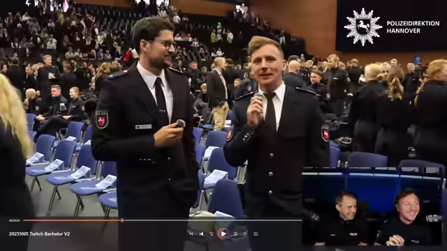 00:17:00Der Stream konzentriert sich auf den '110 Marathon', der Einblicke in die Leitstelle und die Einsätze der Polizei Hannover bietet, sowohl im Twitch-Stream als auch über Instagram. Ein Highlight ist ein Video der Bachelorabschlussfeier vom Montag, das zeigt, wie Studierende zu Polizeikommissaren ernannt wurden und ihre Urkunden erhielten. Diese Absolventen stammen aus verschiedenen Polizeidirektionen in Niedersachsen und Bremen. Die Feierlichkeiten sind ein festlicher Rahmen mit der Innenministerin und Vertretern aus Politik und Polizeiführung. Im Stream wird die Bedeutung der Polizeidirektionen und der ihnen untergeordneten Inspektionen, Kommissariate und Stationen erläutert. Ein Moderator erinnert sich an seine eigene Abschlussfeier vor 20 Jahren, die ähnlich ablief. Es wird auf die Möglichkeit hingewiesen, Clips für die Streaming Awards einzureichen, und die Idee eines Livestreams von den Awards selbst wird diskutiert.