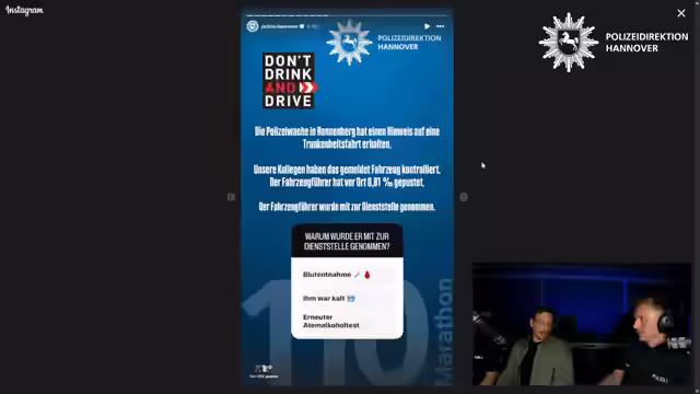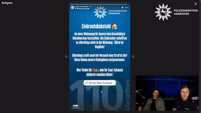 Die Polizei Hannover streamte live aus der Leitstelle und gewährte Einblicke in den Alltag. Themen waren u.a. Bachelorstudium, Tattoo-Richtlinien, Schusswaffengebrauch und die Arbeit des Social-Media-Teams. Ein Video der Bachelorabschlussfeier wurde gezeigt. Zuschauerfragen wurden beantwortet und es gab Infos zu Notrufmissbrauch und dem Ablauf eines Notrufs.
