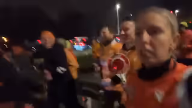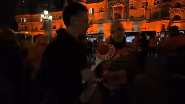 00:07:12Nach dem Gespräch mit dem LKA-Vertreter drehen die Moderatoren die Kamera, um das beeindruckend orange beleuchtete Rathaus und den sich füllenden Platz zu zeigen. Officer Summer übernimmt kurz die Moderation und betont die Bedeutung des Internationalen Tages gegen Gewalt an Frauen. Während des Wartens auf die Startnummern wird die entspannte Pace von 37 Minuten pro Kilometer hervorgehoben, die den Lauf für alle machbar macht. Die Moderatoren suchen aktiv nach Interaktionsmöglichkeiten mit dem Chat und schlagen ein gemeinsames Warm-up vor. Die Zuschauer werden aufgefordert, Ideen für Übungen einzureichen, die später umgesetzt werden sollen. Ein besonderes Highlight ist das spontane Interview mit einem Fernsehteam, das ebenfalls über den Lauf berichtet. Dabei wird die zentrale Botschaft des Tages betont: Gewalt gegen Frauen ist kein Tabuthema, sondern eine Angelegenheit, die alle angeht und offen angesprochen werden muss. Diese Interaktionen tragen dazu bei, die Vielfalt der Teilnehmer und die breite Unterstützung für die Sache zu zeigen.