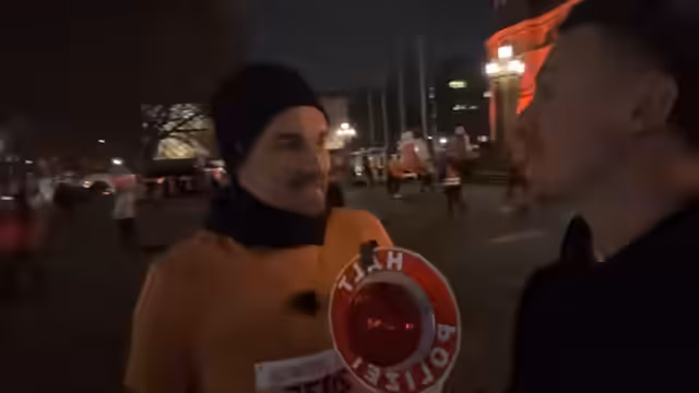 00:37:43Eine weitere vom Chat gestellte Aufgabe ist ein Interview, das ausschließlich in Reimform geführt werden muss. Janni, der Moderator, übernimmt die Herausforderung und sucht sich eine zufällige Person in der Menge, um sie in Reimen zu befragen. Obwohl die Befragte zunächst verwirrt ist, wird die Aufgabe zur Belustigung des Chats erfolgreich umgesetzt. Nach dieser humorvollen Einlage bereiten sich die Moderatoren auf den eigentlichen Start des Laufs vor. Sie entscheiden sich, ohne Jacken zu laufen, um die orangefarbenen Trikots besser zur Geltung zu bringen, obwohl es sehr kalt ist. Der Startbogen ist sichtbar, und es wird noch einmal betont, dass alle gemeinsam die fünf Kilometer lange Strecke durch die abgesperrte Innenstadt von Hannover absolvieren werden. Die Durchschnittspace von 37 Minuten pro Kilometer soll sicherstellen, dass alle Teilnehmer zusammenbleiben und die Solidarität im Vordergrund steht. Die letzten Vorbereitungen werden getroffen, und der Lauf beginnt, begleitet von Musik und einer energiegeladenen Atmosphäre.