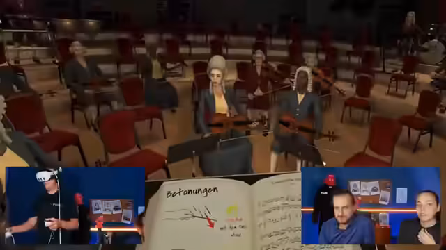 01:52:15Der Stream beginnt mit einer Vorstellung des VR-Musikspiels 'Maestro', bei dem die Teilnehmer mit einem Taktstock dirigieren und so Musik steuern. Das Spiel wird für intuitiv und realistisch beschrieben, auch wenn die Steuerung als anspruchsvoll gilt. Dabei wird diskutiert, ob ein Orchester ohne Dirigenten weitermachen könnte, was tatsächlich möglich wäre, jedoch gewisse Anforderungen stellt. Die Teilnehmer haben sichtbare Freude an der virtuellen Dirigier-Erfahrung, wobei Bewegungsprobleme und die Anpassung der Lautstärke thematisiert werden.