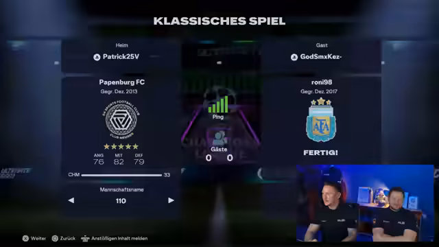 01:14:14Nachdem der erste Gegner 'Gott Roni Mohammed Gods Mix' das Spiel angenommen hat, wird sein Team geprüft und festgestellt, dass es gegen die Turnierregeln verstößt. Er hat kein vollständiges Bundesliga-Team und auch nicht die geforderten zwei Spieler von Hannover 96. Obwohl der Gegner sich gefreut hat, weiterzuspielen, wird er disqualifiziert. Die Polizei Hannover geht als klarer Sieger aus der Partie hervor und steht somit in der nächsten Runde.
