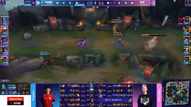 03:45:06Ein wendepunktloses Game entsteht durch strategische Nashor-Kontrollen und Teamfights. Der Nashor-Start von G2 wird als intelligenter Makro-Zug bewertet, um den Map-State zu neutralisieren und Witchcraft zum Reagieren zu zwingen. Im entscheidenden Teamfight zeigt G2 eine überlegene Koordination, besonders durch Makuns fantastische Malphite-Ultimate, die den gegnerischen Engage unterbricht und es G2 ermöglicht, den Fight zu gewinnen und das Spiel zu drehen. Witchcraft wirkt unkoordiniert und macht individuelle Fehler, während G2 als geschlossene Einheit agiert.