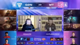 00:23:28Der Fokus liegt auf den Spielen von UOL und WLG. Die Moderatoren sehen beide Teams als Favoriten, warnen aber vor den kreativen und strafenden Spielern von WLG, wie Unknown und Aibo. Beim Draft des ersten Spiels zwischen UOL und WLG wird eine auf Teamfights und Ausdauer ausgelegte Komposition von UOL mit Vayne, Cassiopeia und Ryze als stark eingestuft. WLG antwortet mit einer frontaleren Variante, die auf das Jarvan IV und Aatrox Duo setzt, bei dem Lulu jedoch als Blunder angesehen wird, da sie das starke Vayne-Jarvan-Pairing nicht countert.