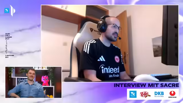 00:45:16Ein Interview mit dem Top-Laner von Eintracht Frankfurt, Sark, wird gezeigt und analysiert. Sark erklärt, dass das Team in diesem Split eine bessere Team-Chemie und Struktur unter dem Coach Zanzara entwickelt hat. Arno bringe einen entscheidenden Clutch-Faktor in engen Spielen. Sark sieht das Team als sehr stark auf dem Papier und ist zuversichtlich, auch im Falle einer Relegation diese erfolgreich zu gestalten. Der aktuelle Fokus liegt darauf, die Erfolgsmaintainance aufrechtzuerhalten und die Qualifikation für die Season Finals zu erreichen. Er erwähnt auch seine eigene persönliche Entwicklung und will jedenfalls noch für einige Splits in der Liga spielen.