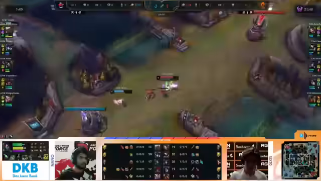 02:31:32Im Beginn des dritten Games zeigen sich taktische Bewegungen im Jungle. Seaboy für Tog und Dunker für AFW konkurrieren um Buffs und Farm. Der frühzeitige Lane-Swap zwischen Top- und Bot-Lane ist zu beobachten, was das taktische Bild komplexer macht. Caitlyn in Bot-Lane hat es schwer gegen Alistar und Fiddlesticks, während Tog versucht, Druck aufzubauen. Die ersten Exchanges gehen zu Gunsten von AFW.