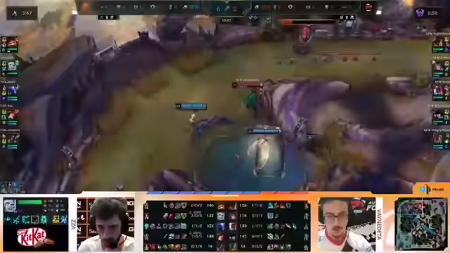 01:56:13Im 分析 des Spiels wird die Performance verschiedener Champions diskutiert, insbesondere die Skalierung von Kaiser. Hierbei wird festgestellt, dass Kaiser mit sechs Crubs ein besseres Scaling aufweist als klassische On-Hit-Builds. Diskussion über die Notwendigkeit von drei bis vier Items für Teamfight-Erfolge. Das Spiel bleibt auf Augenhöhe, wobei unterschiedliche Spielideen verfolgt werden. AFW konzentriert sich auf Mid-Priorität und Sideline-Plays, was erfolgreicher ist als im vorherigen Game.