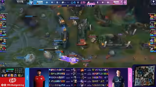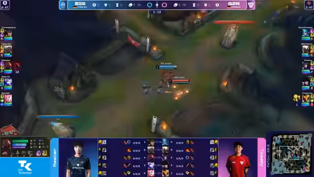 03:33:12Im weiteren Spielverlauf zeigt Big eine überwältigende Dominanz. Spieler wie Patrick als Viktor glänzen mit konsequentem Poke und Positionsspiel, während G2 Nord sichtbar Probleme hat, Druck aufzubauen. Ein Schlüsselfehler in einem entscheidenden Teamfight führt zum Tod mehrerer G2-Spieler, wie Toasty, ohne dass die Team-Koordination dies verhindern konnte. Die Draft-Schwächen ohne Engage fügen sich zu einem unkoordinierten und passiven Spielstil zusammen.