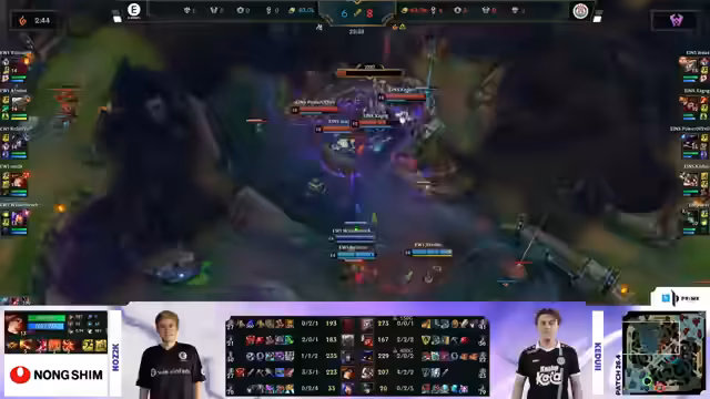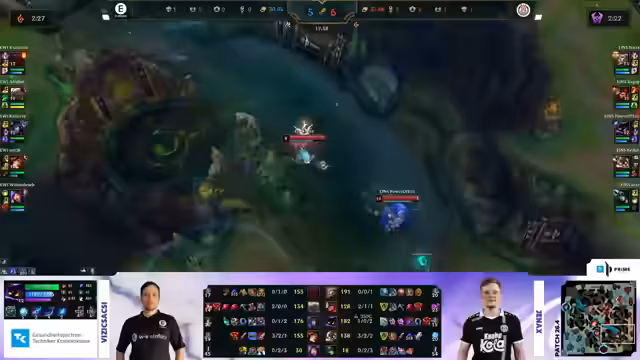 02:42:41Eintracht Spandau profitiert davon, dass Evi den ersten Break landete, was die Objectives im Early Game verbessert. Nos2K und Kanye handeln den Trade mit Kidui Barrier aus. Beide ADCs sterben gegenseitig, doch Gold und XP gehen klar an Evi. Die Moral des Teams steigt, als Power of Evil einen präzisen Charm trifft. Der nächste Drake spawnt in zweieinhalb Minuten, und der Fokus liegt auf zentralen Drakes, die möglicherweise zur Priorität für Ports im Spiel werden.