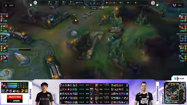 02:58:40Für EVI wird die Rolle von Wildbrach schwieriger, da er keine Engages initiieren kann und sofort platzt. Das Team braucht einen 'magischen Moment', um wie in vorherigen Spielen zu gewinnen. EVI wird von Spandau outscaled, hat aber Champions wie Miss Fortune und Ornn, die einen Fehler des Gegners ausnutzen könnten. EVI ist abhängig vom Map-Play und der mobilität von Relative.