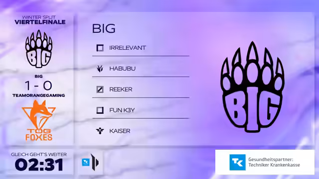 Die Viertelfinale der TK PRIME LEAGUE WINTERSPLIT fanden ihre Entscheidung. Eintracht Spandau setzte sich nach einem spannenden Best-of-3 gegen Ewi durch und zog ins Halbfinale ein. Big behielt im Duell gegen Team Orange Gaming mit 2:0 die Oberhand. Beide Gewinner stehen nun für die nächsten Runden fest.