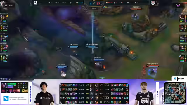 02:53:57Power of Evil zeigt mit 443 AP und Rabadon fertig eine immense Stärke. Für EVI wird es kritisch, da ihre Midgame-Execution mit Niko und Miss Fortune schwierig ist. Ein gefakertes Baron-Bait von Spandau führt zum richtigen Baron-Kall und VEGAs Arbeit am Inhibitor. Spandau nutzt den Wave-State, um in der Midlane vorzurücken, und Eintracht Spandau muss aufpassen, nicht den Inhibitor zu verlieren.